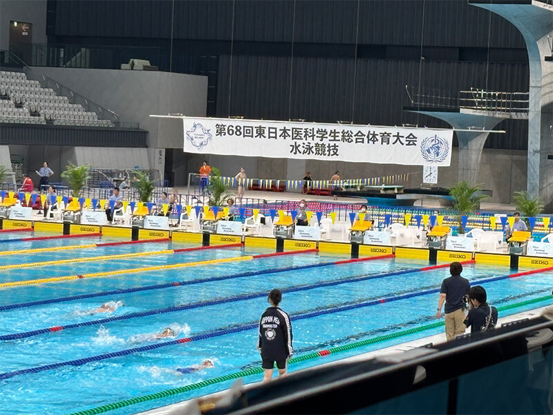 50m自由形を専門に練習しています。この種目は初心者から挑戦できる反面、上級者のレベルが非常に高い難しい種目です。自分の目標を25秒台に設定して練習を続けています。これは東日本医科学生総合体育大会(東医体)で入賞する可能性がある水準です。