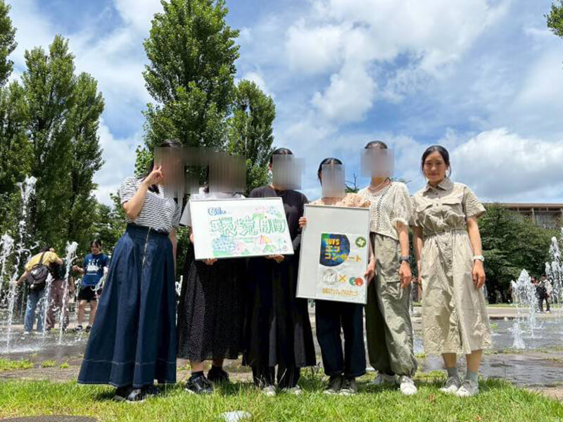 環境問題への意識向上を目的とし、東京外大のカーボンニュートラル計画や日常のエコアクションについてスピーチを行いました。噴水でエコに涼を取りながら、音楽サークルに楽曲を演奏してもらい、学生の皆さんに地球環境のことを考えるきっかけを提供しました。