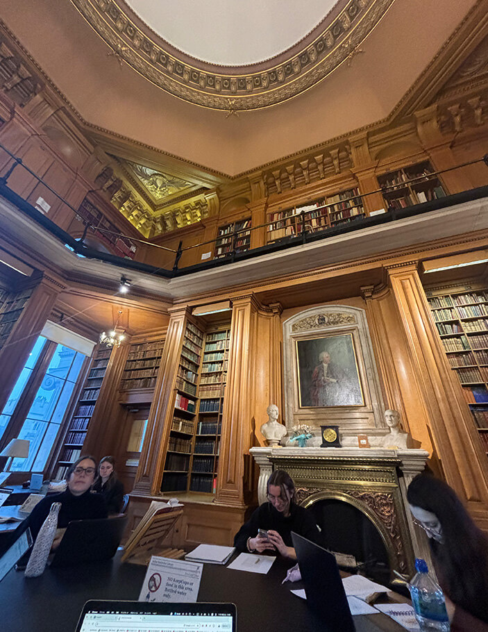 留学先の大学での伝統のディナーにて、留学先の仲間との写真 英国では主にヨーロッパの中世・近代史を学びました。講義中心の日本とは異なり、教授と学生1〜3人の少人数のディスカッションが中心でした。授業に備えるために同じ専攻の学生と史料を読み込み、レポートを準備しながら互いの意見を共有して勉学に共に励んでいました。 - 歴史についての教授と学生のディスカッションはどのようなものですか。