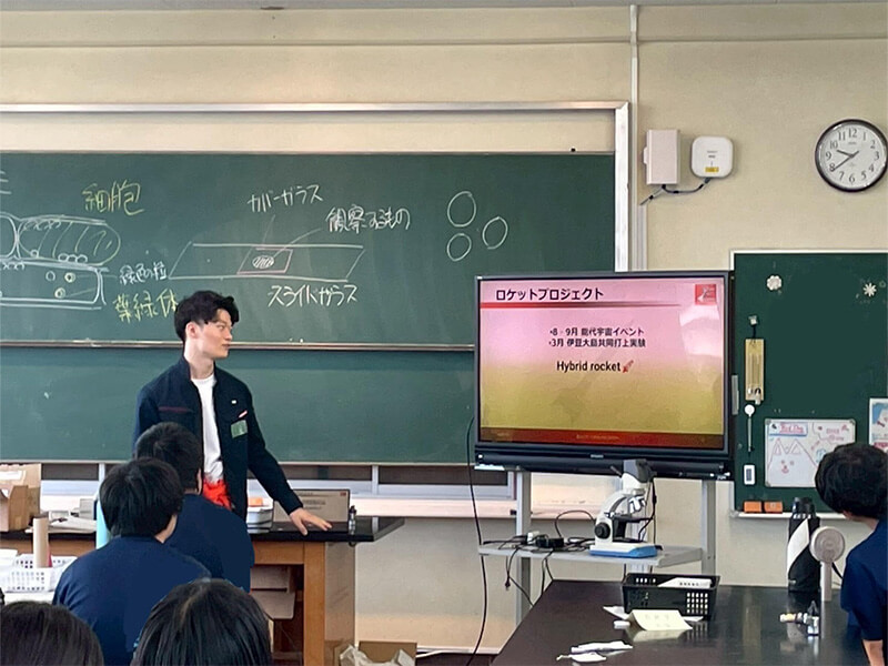 - 宇宙に関心を持ったきっかけは小惑星探査機「はやぶさ」のニュースを目にした時です。プロジェクトに携わった方々の熱意をテレビ越しに感じ、宇宙という未知の世界に挑む仕事に憧れを持ちました。無限の可能性を秘めた宇宙に携わるうえで役立たない学業はありません。理工系を中心に幅広い科目に熱心に取り組んでいます。